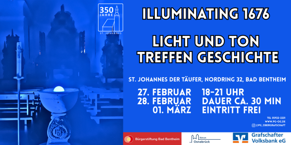 ganz exakt kennt man das Jahr offenbar nicht, aber es spricht einiges dafür, dass im Jahr 1676 die Kirche St. Johannes der Täufer konsekriert, also eingeweiht wurde. Dieses Ereignis vor 350 Jahren wollen wir im laufenden Jahr 2026 entsprechend begehen.